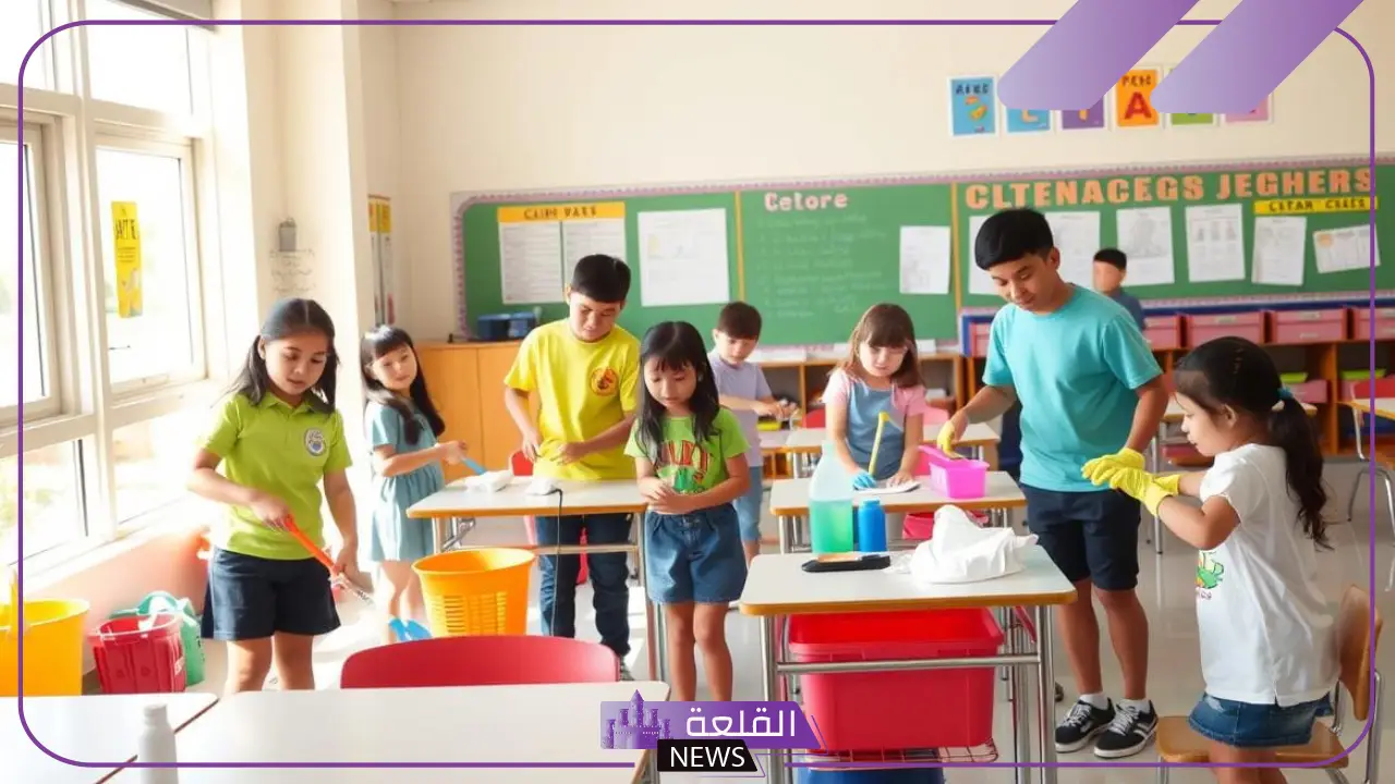 - تخصيص وقت يومي قصير لتنظيف الفصول والساحات المدرسية يحافظ على بيئة صحية طوال العام.